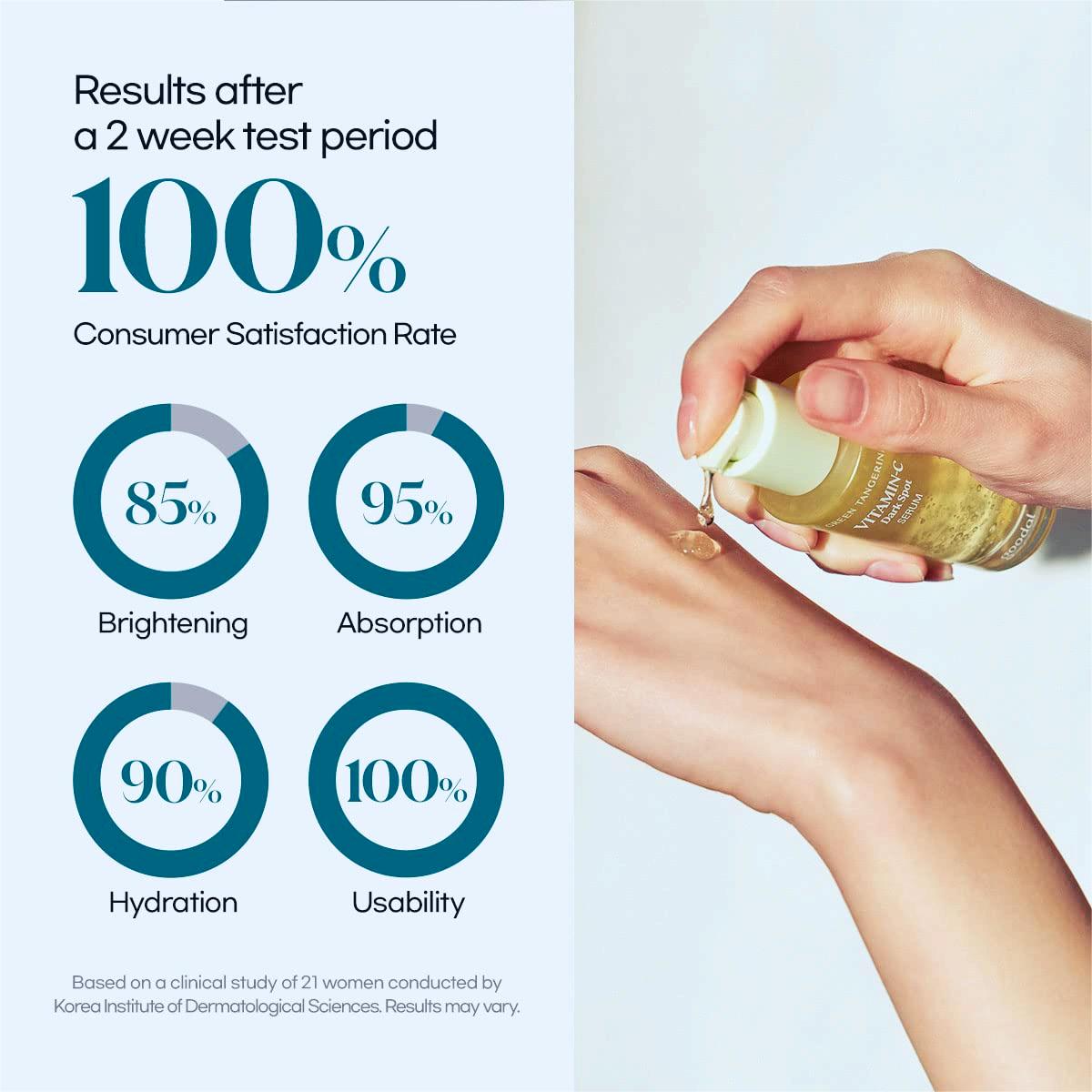Vitamin C Dark Spot Serum contains a powerful blend of 70% Fresh Green Citrus Extract, 4% Niacinamide and Arbutin. Green oranges have powerful antioxidant effects, 10 times more than lemons. Powered by this fruit, our formula improves dark spots and post-acne hyperpigmentation while addressing the formation of new pigment that hasn’t yet appeared.